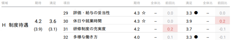 モチベーションクラウド内「制度待遇」の数値も3.6となっています!(平均は3.1)
